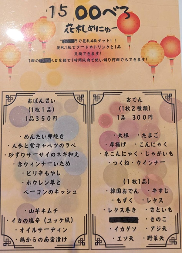花札と交換で呑めて食べれるようです(*’ω’*)