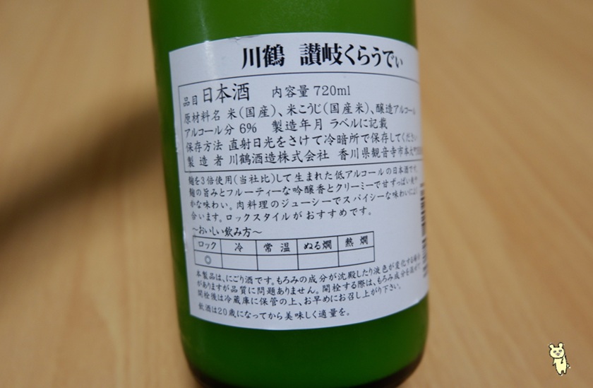 今回注文した香川県は川鶴酒造さんの讃岐くらうでぃになりますっ!