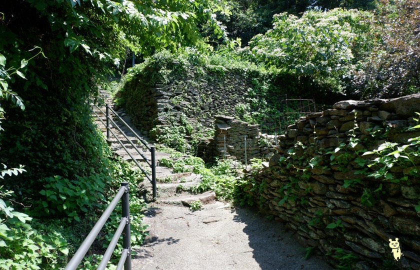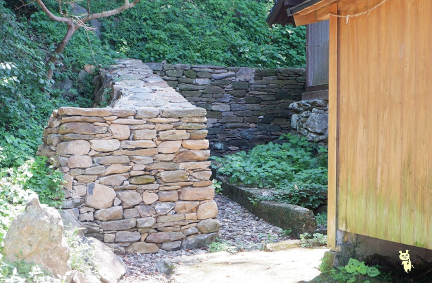 結晶片岩に加え、この付近で算出される玄武岩による石積みが特徴的です